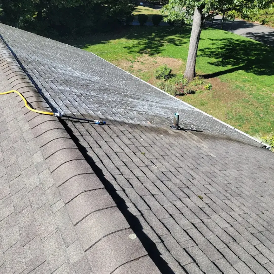 Bring your roof back to life and extend the lifespan of your shingles with our expert roof cleaning services. Over time, algae, lichen, and black streaks can build up, creating an unsightly appearance for your home. Our gentle soft washing technique safely removes these stains, restoring your roof’s beauty without causing any damage.